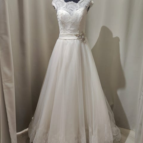 Olkaimeton häämekko upealla laahuksella. Laahuksen saa nostettua, nappi ja lenksu takana. Pesetetty häiden jälkeen. Sisältää alushamee.mn. Ostettu Stokkalta ovh 2400€. Nyt en muista merkkiä kun on porukoilla säilössä, mutta saadaan tietoon kyllä 😊