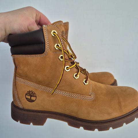 Hyväkuntoiset, vähän käytetyt Timberlandit, koko 38,5. Kenkiä ei ole huollettu, joten pienellä vaivalla, todennäköisesti kulumat saa poistettua ja värin kirkastettua. Varastoinnissa hieman kärsineet, jäädessään puristuksiin