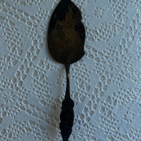 Tekijäntietoa ei ole, mutta lähes varmasti Eugene Haering. AntiqueArt Deco saksalainen kakkulapio, jossa raidallinen bakeliittikahva(?) ja lastaosassa tyylitelty kaiverrus. Valmistettu Saksassa noin 1920-/30-luvulta.