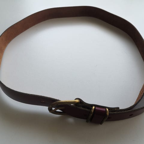 95 cm pitkä nahkavyö. Käyttämätön. Ostolaput yhä kiinni. Leveys 2.5 cm