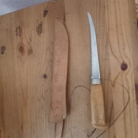 Todella tukeva kädessä, terävä! Terä tuntuisi ja näyttäisi kromatulta. Yleisilme on suomalaista Sisua! Suoraan ylitorniosta Pekan pajalta 2000-luvun alku.