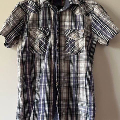 Miesten lyhythihainen kauluspaita, koko M, kaulus pitää puhdistaa paremmin ennen pesua, siinä tahraa. Jack&Jones. Kannattaa katsoa myös muut ilmoitukseni, samoilla postikuluilla tulee muutakin 👍