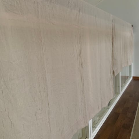 Myydään kahdet sivuverhot. Siistit käytetyt, en syynää. Säilytetty viikattuna kaapissa. Pituus 220 cm.