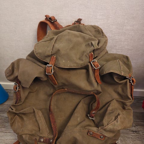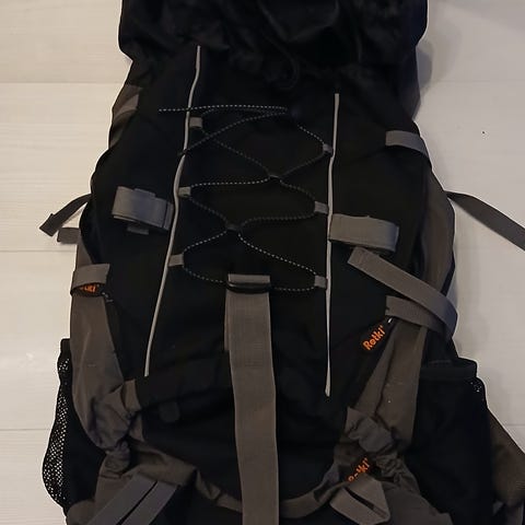 Myydään tarpeettomana kuvan mukainen reppu. Leveys 44cm korkeus 50cm syvyys 23cm.