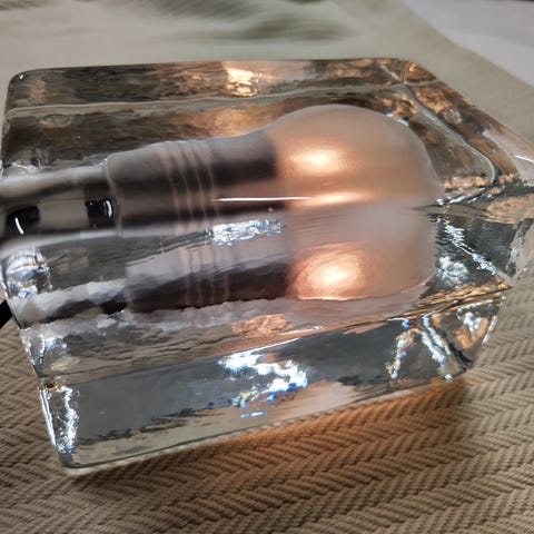 Harri Koskisen vuonna 1997 suunnittelema, useita palkintoja kahminut ja design-klassikoksi muodostunut Block-valaisin on valmistettu käsinvaletusta lasista.