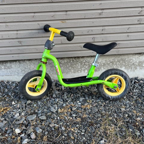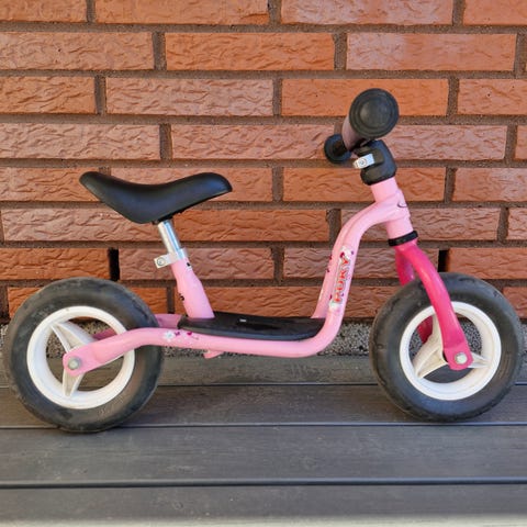 Puky l potkupyörä. Rungosta teipit irronneet ja varmasti jotain osumaa rungossa. Huollettu ja sisäkumit vaihdettu viimekesänä. Ei uusi mutta käyttökunnossa. Nouto