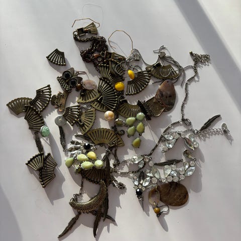 Erilaisia koruosia tai riipuksia, kertynyt niiden vuosien ajoilta kun tein koruja. Nämä sopii hyvin kaulakoruihin riipuksiksi ja osasta voi tehdä helposti myös korvakoruja tai rintakoruja.