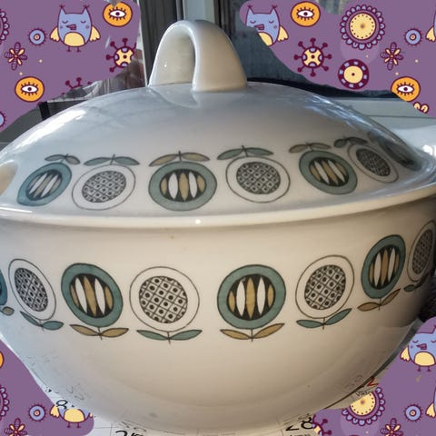 Pohjassa ulkopuolella pieni riksu, ei lävitse haljennut eikä palaa irti. Sisältä siisti, mutta ulkopinnassa ajan tuomaa patinaa. Katso kuvat!
