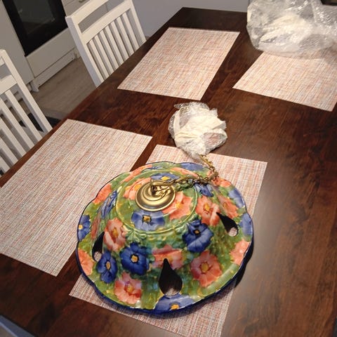 Myydään kaunis keraaminen keittiön kattovalaisin. Korkeutta voi säätää. Halkaisija noin 42 cm. Siisti kuntoinen.