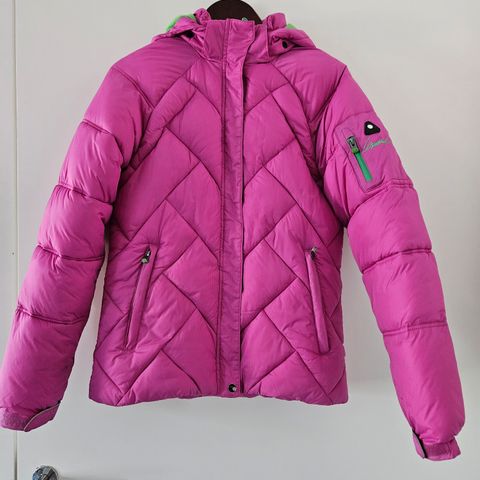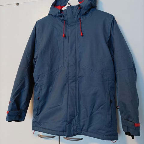 Sininen toppatakki. Kukkia. Pieni likatahra edessä