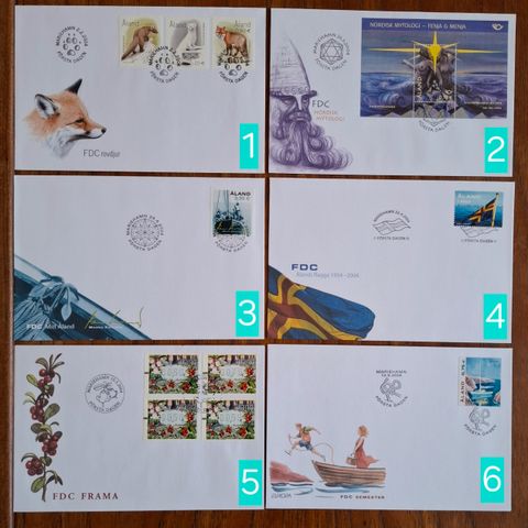 Ahvenanmaan ensimmäiset postimerkit 1.3.1984 ensipäiväkuorissa:
