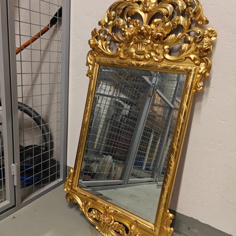 Myydään kuvan kullattu peili. Semiantiikkia Ruotsista. Valmistusvuosi 1963.