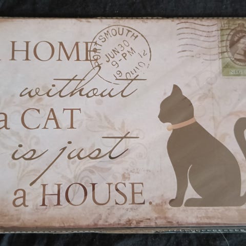 Laminoitu kissakyltti. n. 21,5 x 15,5 cm.