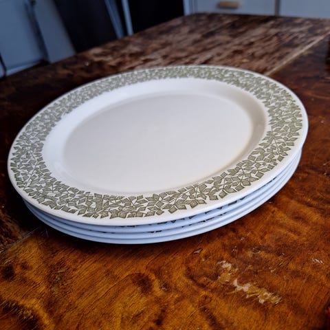 vanha lautanen vintage vihreä kuvio viherreunus arabia kasvikuvio soppalautanen ruokalautanen syvä lautanen