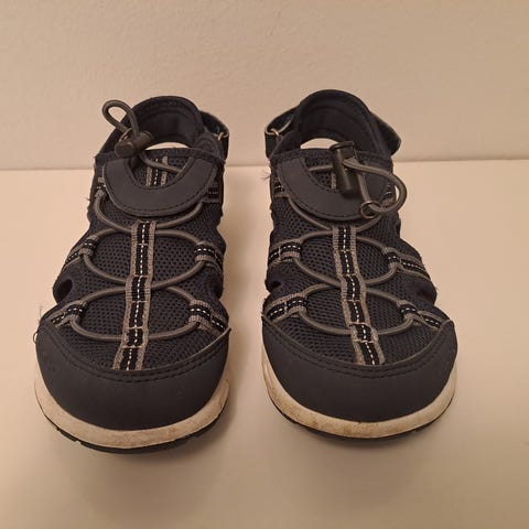 Lasten hyväkuntoiset sandaalit. Pohjat ja remmit nahkaa. Tummansiniset, glitteriä. Yhden kesän kävellyt. Tarrat pitävät hyvin. Koko 30.