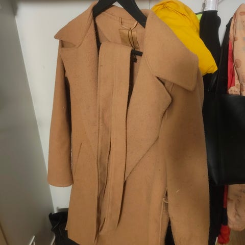 Naisten pitkä takki, koko L. Hinta 8e, haku onnistuu Porin keskustasta.
