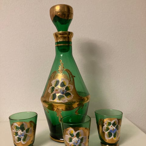 4 pikaria ja karahvi 24 karaatin kultauksella.hinta alennettu. Nyt edullisesti