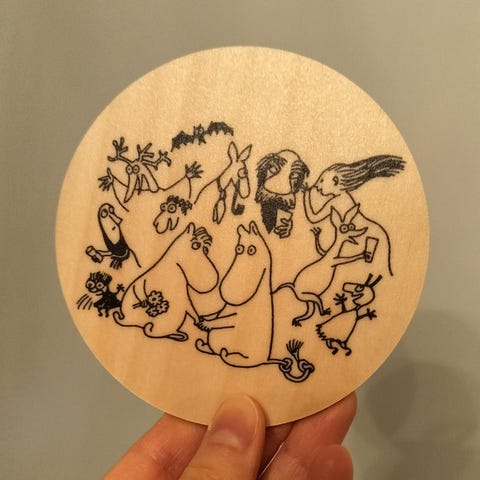 Myydään Muumin juhlavuosi "Moomin80 " -lasinalunen rauhoittavalla tekstillä: "Stars are my favourite things" siis "Tähdet ovat lempi juttujani". Valmistaja on Muurla ja materiaali koivuviilu. Tämä on aivan uusi, käyttämätön, vain kuvattu. Pinnassa tosin näkyy nyt uutena aivan aavistus yhdessä kohdin jotain kevyttä jälkeä, valmistuksessa tullutta....?