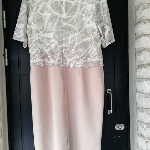 Kerran juhlissa käytetty. Pohjaväri beige, pitsit mustia. Takana vetoketju. Ihana pehmeä materiaali.