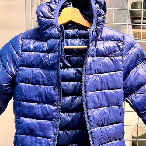 Myynnissä uusi takki. Väri tummansininen.