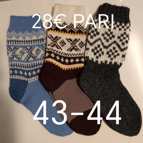 Villasukat 7-veljestä käsin tehty, 75%villaa ja 25 %polyamiidia. Vahvistettu kantapää. Pesu 40 °