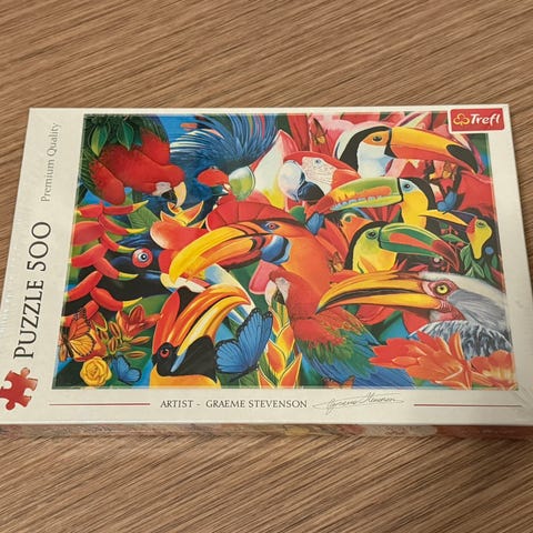 Kauniin värikäs hyväkuntoinen palapeli. Kerran koottu. Kaikki palat on tallessa. Palapelin mukana kaunis pussi, jossa palat on. Mukana myös iso pahvinen kuva palapelistä. Palapelin palat on kovia ja laadukkaita. En postita/nouto.