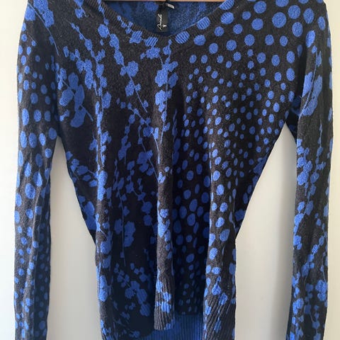 Kaunis vanha neulepusero 1990-luvulta. Vaalean ruskeaa kuvioneulosta. Valmistajan lappu niskasta on leikattu, mutta sivussa on lappu. 50 % puuvilla, 50 % akryyli. Siisti ja ehjä. Ry 105 cm, olalta helmaan 66 cm, hihanpituus 47 cm, kaulalta hihansuuhun 61 cm. Postitus tai nouto.
