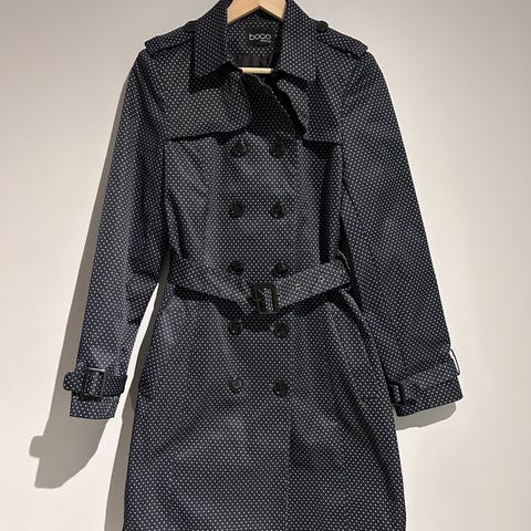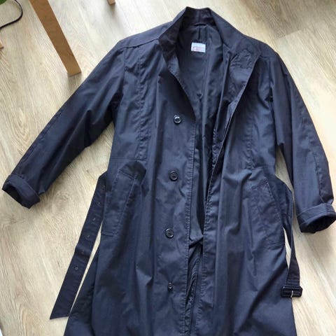 Muodikas oversize trenssi. Koko L. Olikin liian iso minulle. Uusi käyttämätön takki. Pituus 109, kai-kai 60, hiha noin 65. Malli ns.oversize joten on väljä mitoitus. Puuvilla 68%,polyester 32%. Laadukkaan tuntuinen takki.