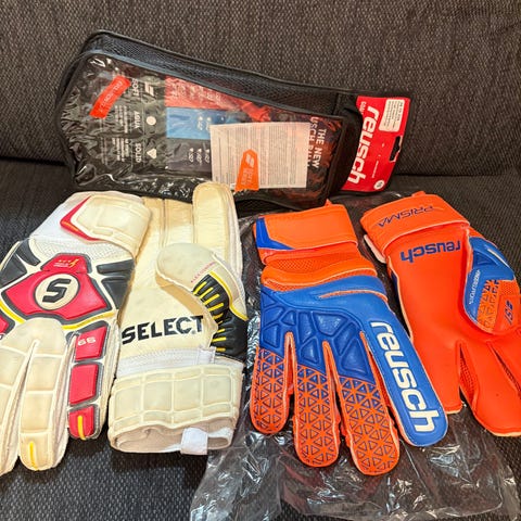Täysin uudet Reusch Pure Contact maalivahdinhanskat, suojamuovit vielä päällä.