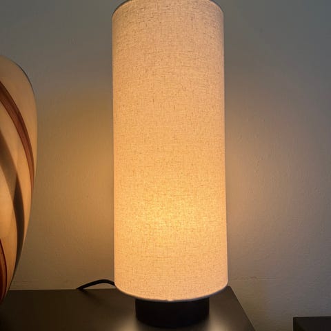 Mustassa pöytävalaisimessa on petsattu puujalka ja rustiikkinen pellavalampunvarjostin - täydellinen yhdistelmä luomaan upeaa vintage-fiilistä!