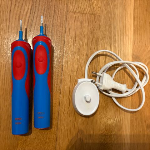 Kaksi täysin toimivaa sähköhammasharjarunkoa ja laturi. Akut toimivat yhdellä henkilöllä. n. viikot pesuihin.