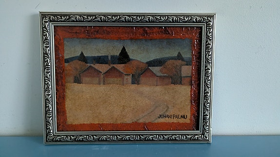 E. Matilaisen signeeraama, Turun Aurajoen rantaan kuvaava, öljyvärityö.