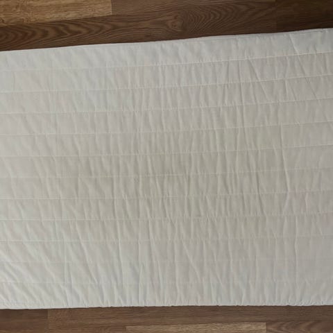 Pinnasängyn patja. Vaahtomuovipatja retro kuosilla. Mukaan valkoinen muotoon ommeltu trikoolakana. Siistisdä kunnossa.