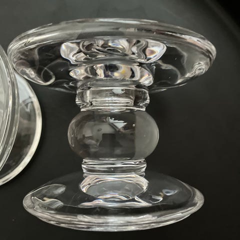 Kaksi kaunista lasistaja hyväkuntoista kynttilänjalkaa.