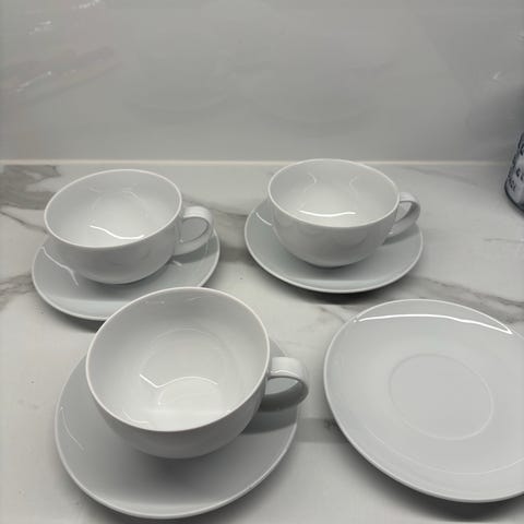 Virheetön teekalusto,ja miksei kahvillekkin kupin vetoisuus 2dl.Lautasia 12kpl kuppeja 11 kpl