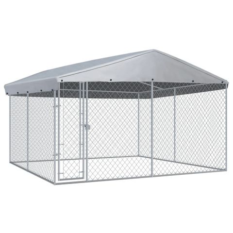 Tämä suuri koiranhäkki tarjoaa runsaasti harjoittelutilaa. Ympäröivä ketjusilmukkaverkko auttaa ehkäisemään ilkivaltaa ja odottamattomia onnettomuuksia mahdollistaen samalla hyvän ilmankierron. Tämä koiranhäkki on lujatekoisen ja raskaan galvanoidun teräsrakenteensa ansiosta kestävä ja pitkäikäinen. Toimitukseen sisältyvä 100 % polyeteenistä valmistettu katos on palonkestävä ja UV-suojattu, joten se tarjoaa suojaa auringolta, sateelta, lumelta ja muilta sääilmiöiltä. Saranoitu ovi lukittavalla salpajärjestelmällä takaa koirille ylimääräistä turvallisuutta ja suojaa. Kokoonpano on helppoa.
