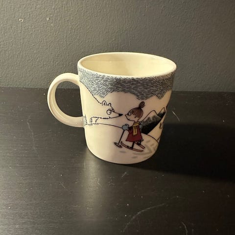 Muumimuki Hiihtäen kera herra Virkkunen, tarrallinen