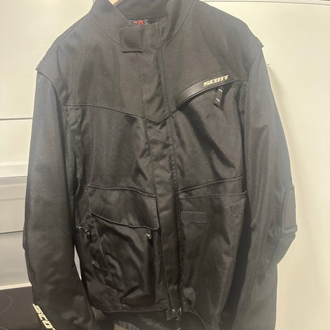 Hyvässä kunnossa oleva ajotakki. Irroitettava tikkivuori. Kyynär- ja olkasuojat. Sivutaskut ja povitasku. Edessä myös vetoketjulliset tuuletusaukot.