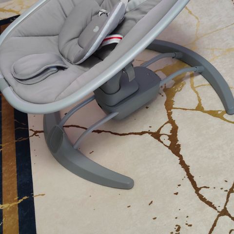 Sitteri joka säätöjen puolesta menee vauvasta taaperolle. Irroitettava pestävä päällinen ja lelukaari. Keinuasennossa selkänojan säädössä kaksi vaihtoehtoa. Vauvalle makuuasento. Rauhoittava värinätoiminto, toiminut viimeksi käytössä ollessa 10 v sitten. Nouto Hml Nuppolasta.