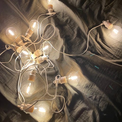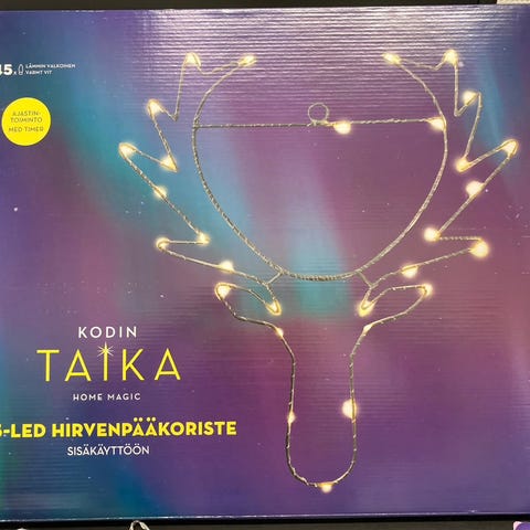 Suloiset keijuvalot, toimivat moitteettomasti. Keijuja on 10 kpl. Johdon kokonaispituus on 510 cm, johto on silmukalla. Mukana alkuperäispakkaus ilman kantta. Keijuista osan mekko hieman tummentunut.