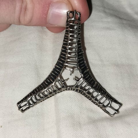 Vanha hopeinen norjalainen riipus. Ketju kuuluu mukaan. Tehty 1250-luvulta löytyneen riipuksen mukaan.