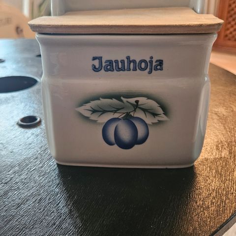 Vanha arabian jauhopurkki. Korkeus ilman kantta 18 cm, halkaisija 13,3 cm,