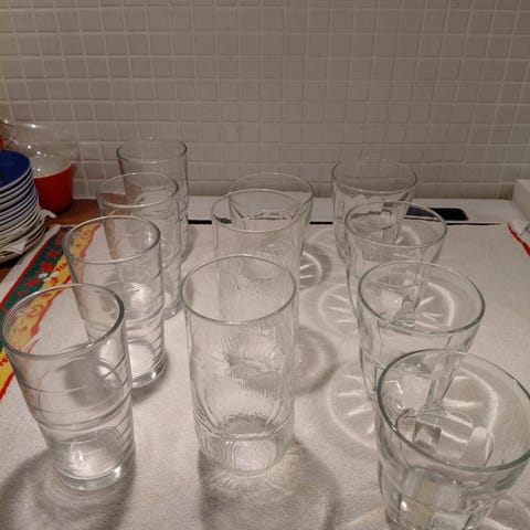 Mökiltä ylimääräiseksi jääneitä hyväkuntoisia juomalaseja, vetoisuus 2,5 dl, korkeus 12 cm