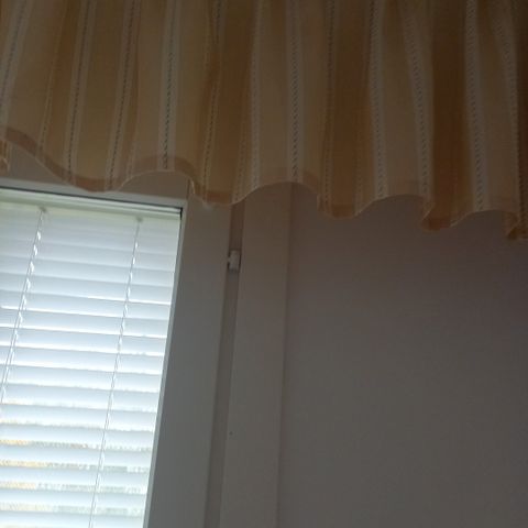 Valkoista puuvillaa, keskellä pystysuunnassa reikäommelta. Ollut kaapinedusverhona tarrassa. Pesty, muttei silitetty. Nouto Tesomalta sovitusti tai postitus jolloin postikulut ostajalle, myös ToriDiili käy.