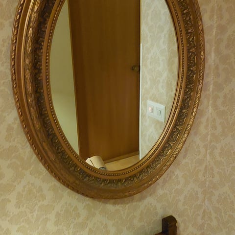 Kultareunuksinen fasettihiottu hyvässä kunnossa oleva vanha peili. Kokoa peilillä on 73 cm x 63 cm , jonka voi noutaa Ylämyllyltä hintaan 120€.