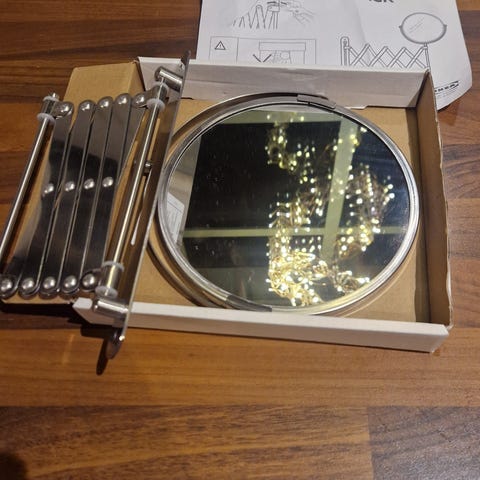 Pakkauksessa oleva peili/ muistiinpanotaulu jonka voi noutaa Ylämyllyltä hintaan 5 €