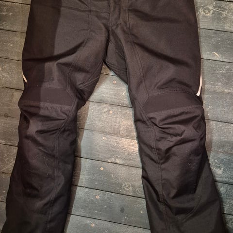 Hanx ajohousut, naisten, koko 38. Tuulen ja vedenpitävät, mustat. Polvisuojat. Käytetty ehkä kerran.