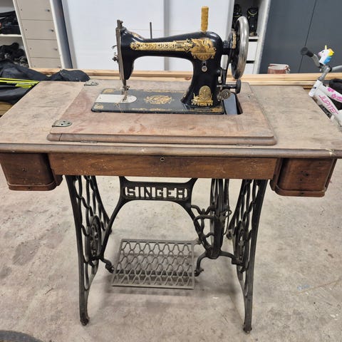 Myyntiin vanha ompelukonepöytä sisustukseen. Koneen toiminnasta ei tietoa koska itsellä ollut koristepöytänä. Vain nouto.