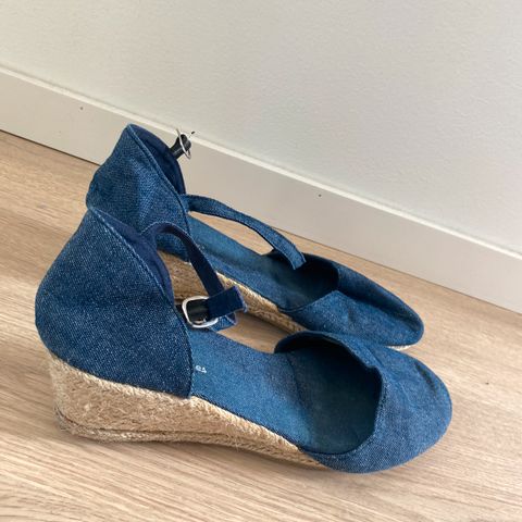 Naisten kiilakorkosandaalit, ok kuntoiset. Pysyvät hyvin rintavammassakin jalassa.