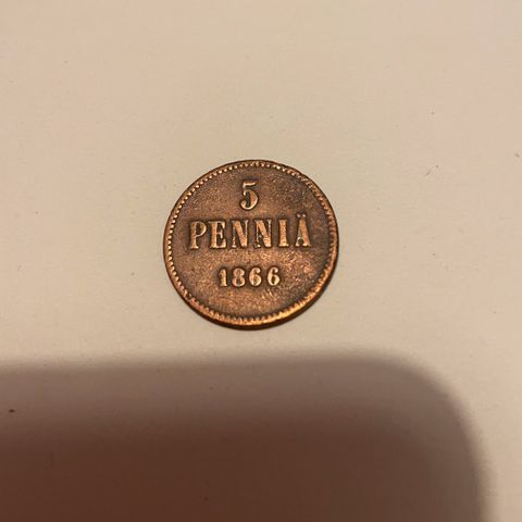 Myydään kuvan mukainen 10 penniä vuodelta 1867.
